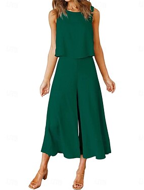 Per donna Set di Pantaloni Senza Maniche Girocollo Semplice Arricciato Patchwork Elegante Moda Streetwear Casuale Quotidiano All'aperto Nero Verde chiaro Rosso Estate Vestibilità comoda