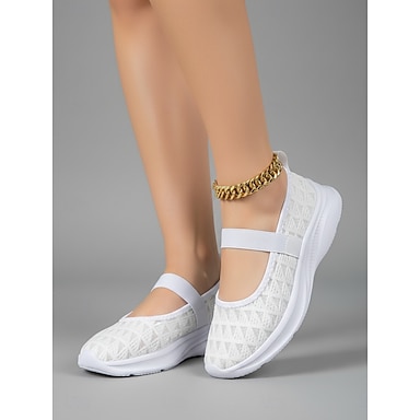 Sneakers Mary Jane da donna bianche in mesh: scarpe comode, leggere e traspiranti con cinturino elastico, ideali per l'uso quotidiano, i viaggi e il lavoro.