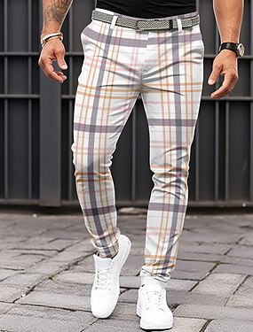 Per uomo Plaid Pantaloni Eleganti Misura del girovita medio Business Casual Formale Abbigliamento Quotidiano Tasca Estate Primavera Autunno Beige