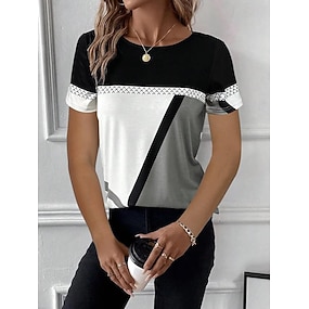 Per donna Maglietta Stampato Blocco di colori Moda Manica Corta Girocollo Top Regolari Quotidiano Weekend Grigio Estate