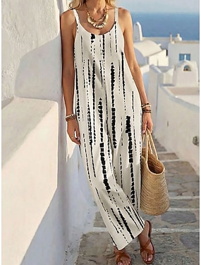 Per donna Normale Tuta Attivo Astratto Senza Maniche Gamba larga Collo a U Stampato Senza schiena Quotidiano Vacanza Vestibilità regolare Nero Estate