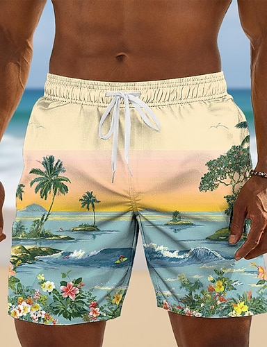 Per uomo Albero di Cocco Piante Tropicali Fiori Costumi da bagno Pantaloncini da mare Pantaloncini da Surf Misura del girovita medio Hawaiano Vacanza al Mare Tasche Laterali fodera in rete Coulisse