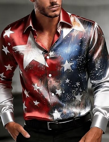 Per uomo Stella 4 luglio, 250° anniversario degli Stati Uniti Bandiera Americana Camicia Camicia in raso Camicia Estiva Manica Lunga Patriotico All'aperto Festival Estate Primavera Collo ripiegato