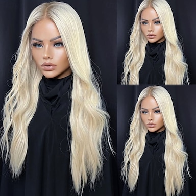 Parrucca frontale in pizzo biondo 613# con onda del corpo 13x4, capelli umani, densità 150%