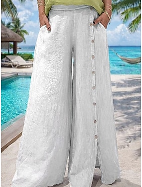 Per donna Finto cotone e lino Gamba larga Pantaloni Estivi Pantaloni Vacanza Moda Streetwear Lunghezza intera Misura del girovita medio Semplice Coulisse Elastico in vita Coulisse alla gamba Comodo