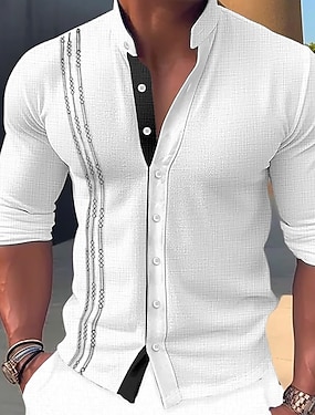 Per uomo camicia di lino Camicia Guayabera Camicia estiva Maglietta informale Camicia da spiaggia A strisce Da mare Hawaiano Bianco Blu Cachi Grigio Manica lunga Bavero Primavera estate Abbigliamento