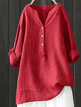 Per donna Top Lungo in Cotone Top Bianco in Cotone Blusa Bianca in Cotone Finto cotone e lino Bottoni Tinta unica Moda Scollo a V Quotidiano Streetwear Blu Bianco Rosa Rosso Fucsia Primavera & Autunno