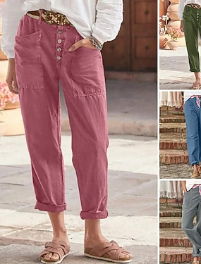 Per donna Pantaloni di Lino Pantaloni Pantaloni casual Pantaloni Estivi Vacanza Classico Casual Quotidiano Lunghezza alla caviglia Misura del girovita medio Semplice Tasca Baggy Comodità Morbido
