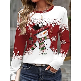 Natale Per donna Maglietta Grafico Pupazzo di neve Albero di Natale Vintage Moda Elegante Manica Lunga Girocollo Top Regolari Quotidiano Weekend Stampato Nero + bianco + rosso Nero Blu Verde scuro