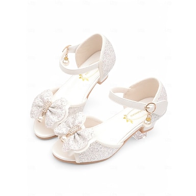 sandali da bambina con fiocco glitterato viola e accenti di perle, cinturino regolabile, perfetti per matrimoni, compleanni e occasioni speciali