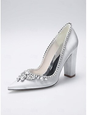 Scarpe da sposa argentate da donna – eleganti scarpe da sposa a punta con cinturino alla caviglia per matrimoni in giardino