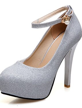 Scarpe da sposa con tacco argento scintillante da donna con fiocco – eleganti scarpe da sposa con punta a punta e cinturino alla caviglia per la sposa