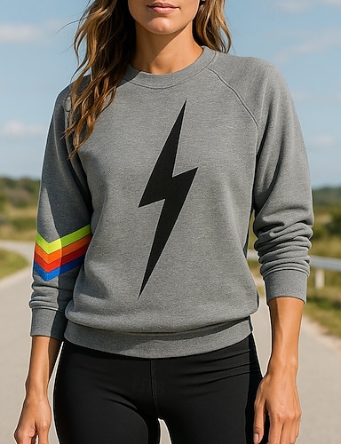 Per donna Felpa pullover Top casual Manica Lunga Top Athleisure Autunno Grafico All'aperto Viaggio Vacanze abbigliamento sportivo Abbigliamento sportivo Blu scuro Grigio
