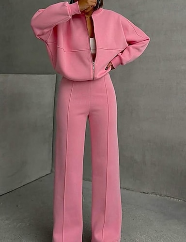 Per donna Set tuta pullover Tute casual Set da salotto da 2 pezzi Gamba larga Mezza cerniera A righe Completo Abbigliamento Primavera Verde militare Grigio All'aperto Viaggio Jogging Manica Lunga