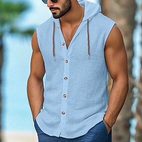 Per uomo Camicia Camicia di lino Camicia casual Camicia con Bottoni Camicie sbottonate Semplice Vacanza Streetwear Nero Bianco Blu marino Marrone Senza Maniche Con Cappuccio Estate Abbigliamento