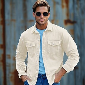 Per uomo Camicia Camicia di lino Camicia popover Camicia Estiva Abbigliamento da spiaggia Polo Tinta unica Casuale Quotidiano Blu Nero Bianco Beige Manica Lunga Collo ripiegato Estate Primavera