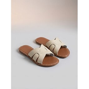 sandali infradito da donna color crema con cut-out: sandali bassi minimalisti ed eleganti per viaggi in yacht di lusso, crociere e vacanze al mare