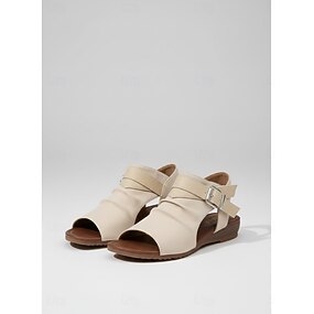 Sandali piatti da donna color beige a blocchi di colore – scarpe casual a punta aperta con cinturino regolabile alla caviglia, scarpe estive leggere per viaggiare, passeggiate in città, giardino