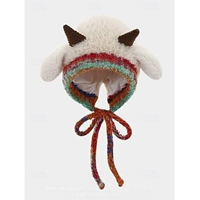 Cappello da animale in finta shearling multicolore per il Mardi Gras con corna da donna - Berretto in lana morbido per Carnevale e cosplay