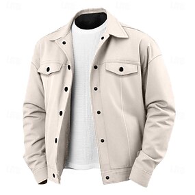 Per uomo Giacca da Esterno Giacca Camicia Formale Casa Tasca Minimalista Primavera Autunno Tinta unica Attivo Neutro Colletto a Camicia Regolare Nero Bianco Blu marino Blu Giacca