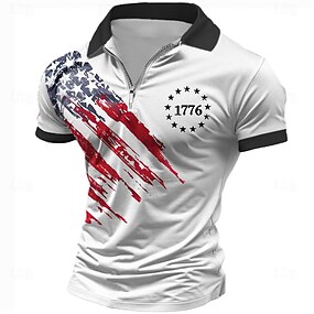 Giorno dell'Indipendenza Americana Per uomo Bandiera Americana Veterani Polo con zip Maglia da golf Manica Corta Magliette polo Camicie con Colletto Casual Abbigliamento casual alla moda