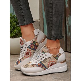 sneakers con zeppa dorate da donna – scarpe da ginnastica con plateau e lacci con stampa etnica per abbigliamento casual da strada e viaggi del fine settimana