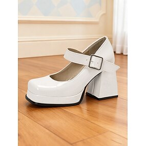 décolleté Mary Jane da donna in similpelle verniciata rosa – tacco grosso e largo con cinturino regolabile, perfette per San Valentino, per tutti i giorni e per le feste