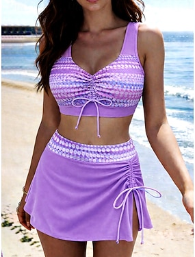 Per donna Costumi da bagno Bikini Due pezzi Gonna Costume da bagno Controllo della Pancia Vita alta Snello Senza schiena Vacanza Abbigliamento da Spiaggia Tinta unica Scollo Tondo Senza Maniche