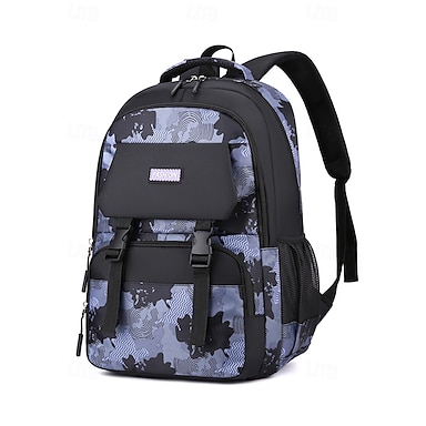 Zaino mimetico alla moda con più scomparti per uomo e donna – zaino alla moda per la scuola o da viaggio con tasca per bottiglia d'acqua, disponibile in blu, nero e grigio