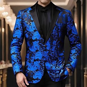 Per uomo Floreale Giacca blazer Cappotto Confortevole Traspirante Artistico Casual Casuale Quotidiano Abbigliamento da sera Tasca Stampa 3D Bottoni Tutte le stagioni Dentellato Manica Lunga Blu Rosso