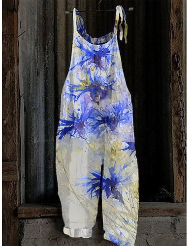 Per donna Tuta Attivo Floreale Senza Maniche Senza maniche Harem Collo quadrato Patchwork Tasca Quotidiano Spiaggia Vestibilità comoda Blu Rosa Viola Estate