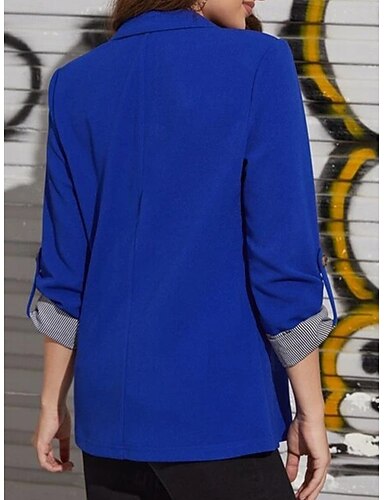 Per donna Giacca Ufficio Righe Tinta unica Tenere al caldo Moda Standard Capispalla Manica lunga Primavera Blu chiaro S