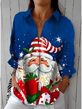 Natale Per donna Camicia Grafico Babbo Natale Elegante Vintage Tropicale Manica Lunga Colletto a Camicia Top Regolari Lavoro Quotidiano Ferie Giallo Blu Viola Verde Grigio Autunno Inverno