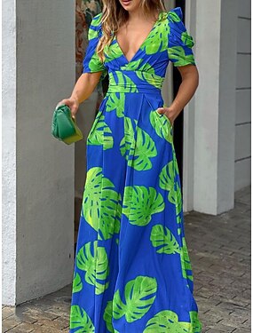 Per donna Salopette Attivo Floreale Senza Maniche Coulisse con tasca Quotidiano Vacanza Vestibilità comoda Blu Blu Reale Verde Estate