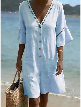 Per donna Pagliaccetto Attivo Tinta unica Manica Corta Gamba larga Colletto a Camicia Tasca Bottoni Quotidiano Vacanza Vestibilità comoda Blu Rosa Vino Estate