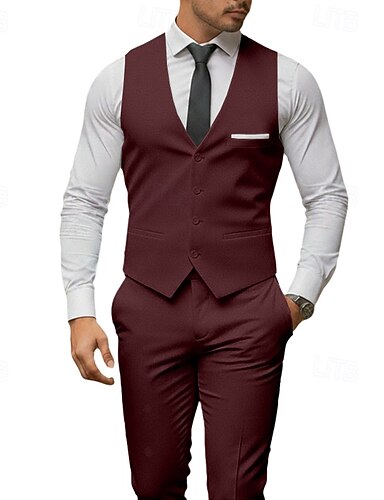 Uomo Smoking Abiti da sposa Casuale Affari Borgogna Primavera, Autunno, Inverno, Estate Tuta Bavero classico Formale Tinta unita Vestibilità aderente 3 pezzi Monopetto Due Bottoni