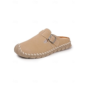 Zoccoli da donna color kaki cuciti a mano – scarpe mule chiuse con fibbia regolabile, ideali per camminare, per il giardino, per viaggiare e per l'uso quotidiano casual.