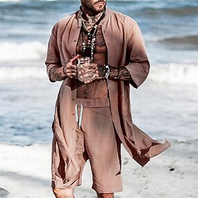 Per uomo Camicia Estiva Camicia casual Camicia da Spiaggia Semplice Vacanza Streetwear Blu Caffè Manica Lunga Colletto Mao Estate Abbigliamento Bottonato