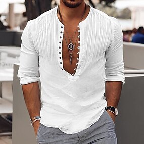 Per uomo Camicia Camicia popover Camicia Estiva Camicia casual Camicia con colletto alla coreana Nero Bianco Blu Manica Lunga Semplice Henley Vacanza Quotidiano Pieghe Abbigliamento Cotone Misto