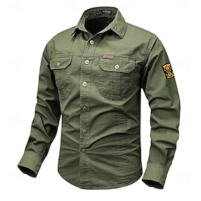Per uomo Tinta unica Camicia da lavoro Camicia Western Camicia cargo Manica Lunga Casual Pantaloni Tattici Sport & Outdoor Uscire Inverno Primavera & Autunno Collo ripiegato Stampato Nero grigio Nero