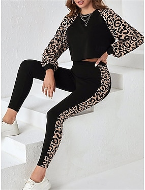 Per donna Di tendenza Streetwear Giornaliero Felpa Chino Manica lunga Girocollo Leopardo Stampa Informale Giornaliero Nero Autunno Standard