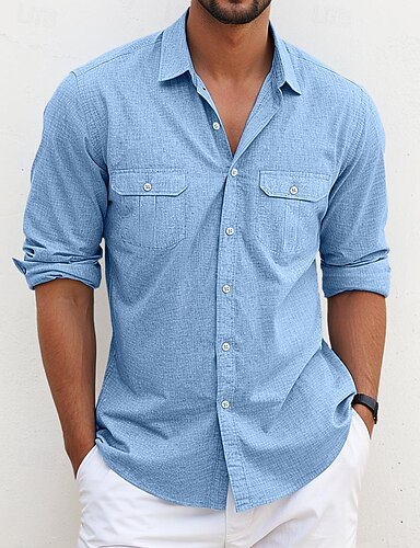 10% Lino Per uomo Camicia camicia di lino Nero Bianco Rosa Manica lunga Tinta unica A fascia Strada Giornaliero Abbigliamento