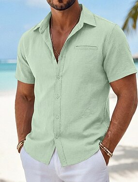 camicia da uomo camicia in finta lino camicia estiva camicia da spiaggia camicia hawaiana estiva tinta unita casual quotidiano blu nero bianco verde chiaro manica corta colletto primavera