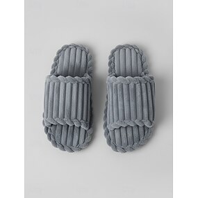 Pantofole estive da donna in peluche rosso scuro con punta aperta: ciabatte morbide e traspiranti con soletta imbottita intrecciata, ideali per la casa, la camera da letto e per il comfort quotidiano.