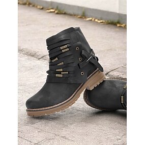 stivaletti con frange da donna - stivaletti neri casual con tacco basso, cinturino con fibbia e dettagli rustici per l'uso quotidiano