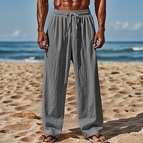 Per uomo Pantaloni di Lino Pantaloni Pantaloni Estivi Pantaloni da Spiaggia Coulisse Elastico in vita Gamba Dritta Semplice Comodità Traspirante Lunghezza intera Casuale Quotidiano Ferie Vacanza Moda