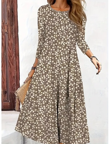 Per donna Abito maxi Abito aderente e svasato Vacanza Casual Boho Feste Quotidiano Uscire Vestibilità regolare Floreale Grafico A Pois Manica Lunga Girocollo Nero Marrone chiaro Blu Viola Autunno