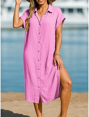 Per donna Abito Midi Abito Estivo Casual Quotidiano Vestibilità regolare Semplice Manica Corta Bavero Rosa Blu Viola Marrone Estate