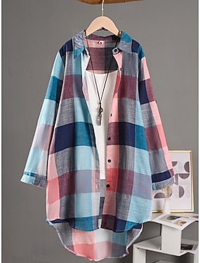 Per donna Giacca Camicia Confortevole Traspirante Bottoni Stampato Casual Plaid Vacanza Streetwear Casuale Abbigliamento quotidiano Monopetto Lungo Collo ripiegato Vestibilità regolare Manica Lunga