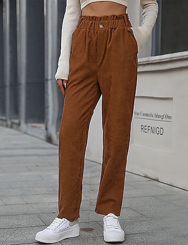 Per donna Gamba larga Pantaloni in velluto a coste Pantaloni Eleganti Streetwear Casual Lunghezza intera Naturale Semplice Tasca Elastico in vita Confortevole Streetwear Ferie Abbigliamento quotidiano